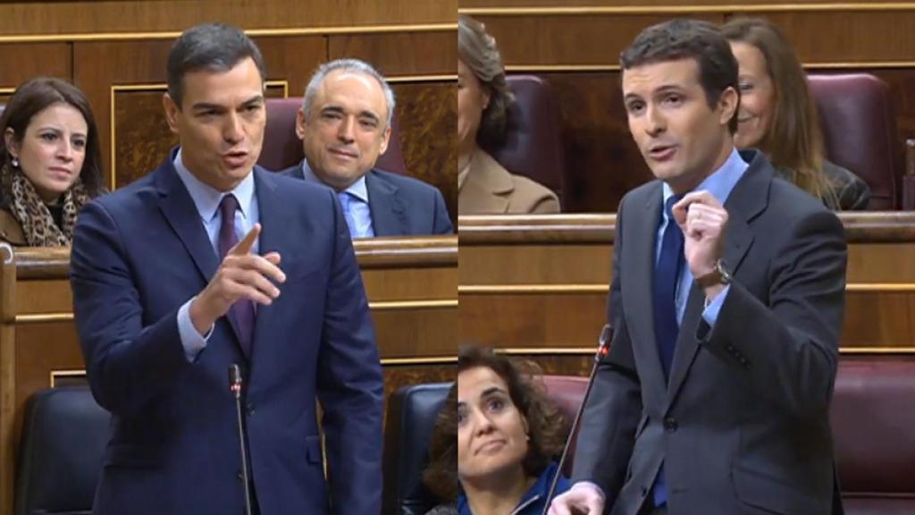 Casado acusa a Sánchez de vivir en una "feria de las vanidades" y el presidente le reprocha "mentir" y le augura una derrota el 28 de abril.