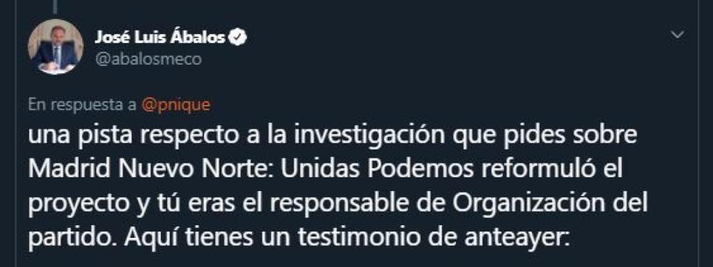 Ábalos ha dicho que está indignado "porque es un acto de desconfianza e hiocresía en el entorno político en el que se produce". "Me enteré por la prensa. Apoyé políticamente el proyecto que defendía la alcaldesa anterior. Que tenga que verme envuelto en una denuncia que no tengo nada que ver", ha añadido.