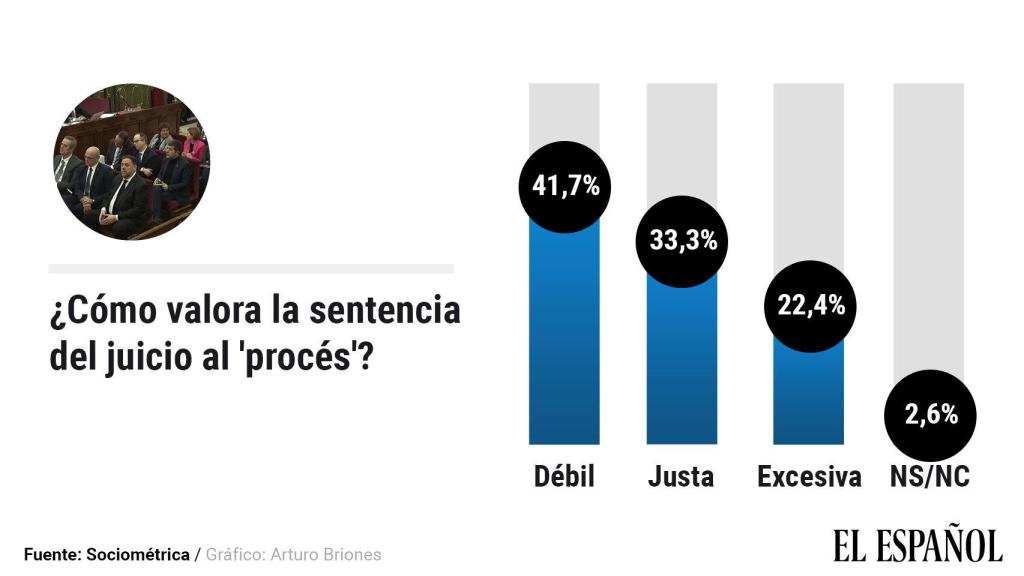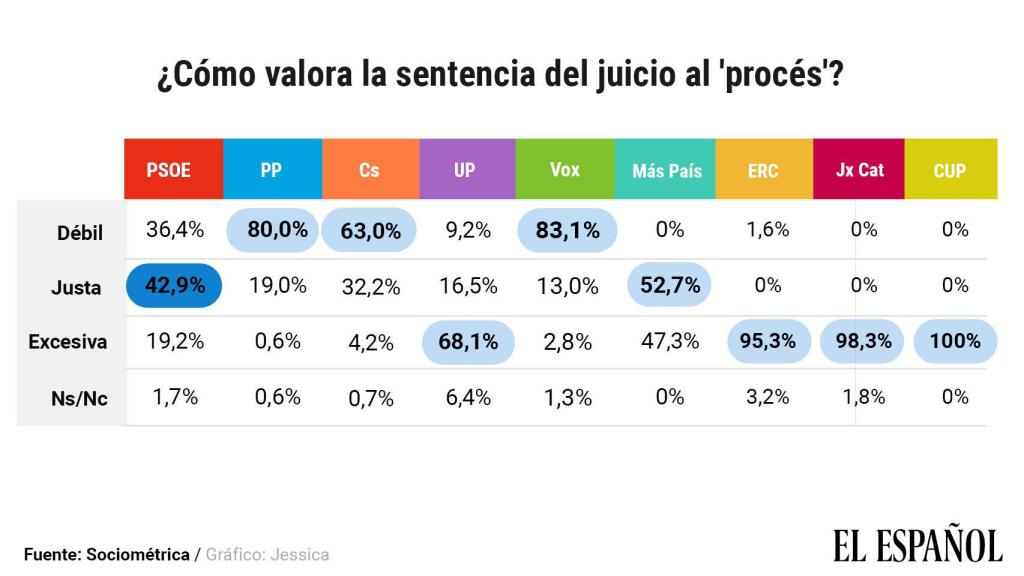 Encuesta de SocioMétrica-EL ESPAÑOL. Los votantes de PP, Cs y Vox se inclinan por que la resolución judicial no es lo suficientemente dura.