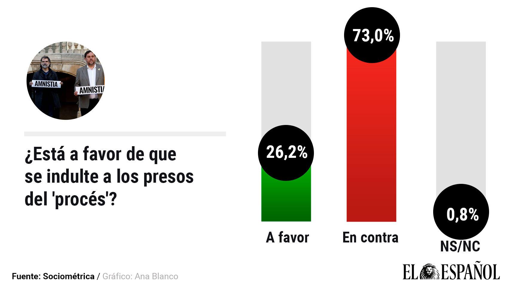 No obstante, sí ha logrado convencer a una parte importante del electorado socialista. Si hace un mes el 72% desestimaba la medida de gracia, ahora el 52,6% la aprueban. Una cifra que se dispara al 84,9% entre los podemitas y al 92% entre los nacionalistas.
