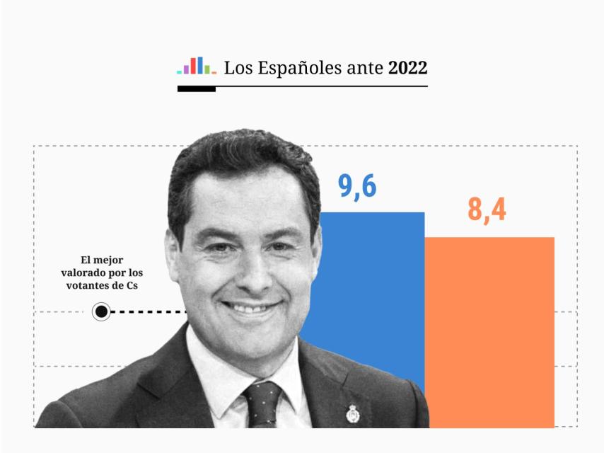 El presidente de la Junta de Andalucía es el líder autonómico mejor valorado por los liberales por detrás de Alberto Núñez Feijóo e Isabel Díaz Ayuso.
