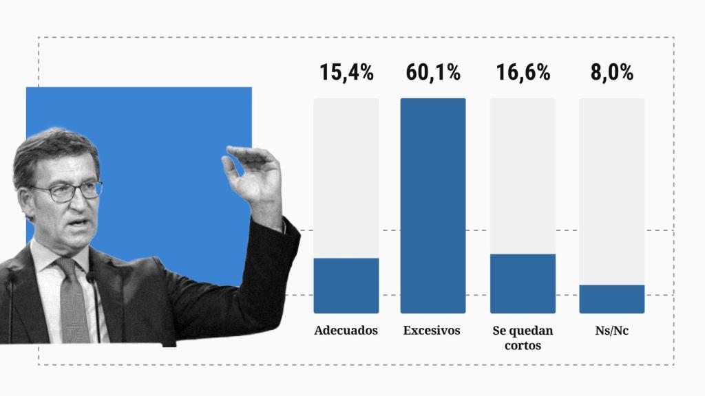Por su parte, y según ha podido saber este periódico, el dirigente conservador ha pedido a los suyos que no entren "al trapo" y que se limiten "a responder con propuestas". Esto lleva a que un 37,5% de ciudadanos defina la labor de oposición de Feijóo como demasiado blanda. Son algunas de las conclusiones del último sondeo realizado por SocioMétrica para EL ESPAÑOL.