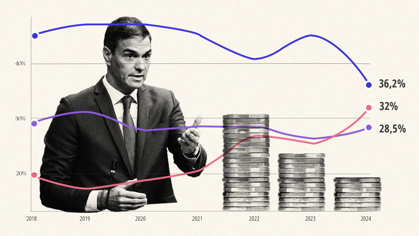 Sin embargo, el cambio más notorio se aprecia en el sector contrario. El porcentaje de españoles que prefiere pagar más impuestos y mejorar los servicios ha caído drásticamente. Actualmente, se trata del 36,2% de la población, una caída de 9 puntos porcentuales con respecto al año anterior. Es la primera vez desde que gobierna Sánchez que este sector está por debajo del umbral del 40%.