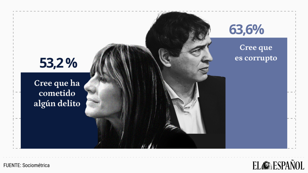 El 65% de los españoles considera "reprobable" la actuación de la mujer del presidente del Gobierno, Begoña Gómez, y algo más de la mitad, el 53%, cree que ha cometido "algún delito", según la macroencuesta elaborada por SocioMétrica para EL ESPAÑOL.