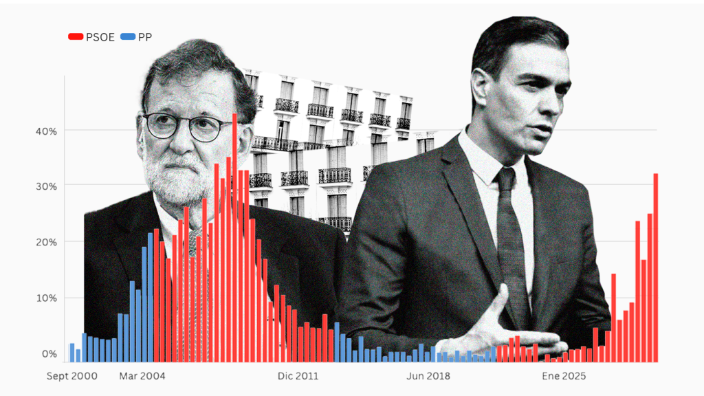 Pero los datos apuntan en otra dirección: según el CIS, que pregunta por este asunto desde el año 2000, la preocupación por la vivienda se dispara históricamente bajo gobiernos del PSOE. De nuevo, se ha disparado ahora con Sánchez y ya está 25 puntos por encima del último dato que alcanzó Mariano Rajoy.