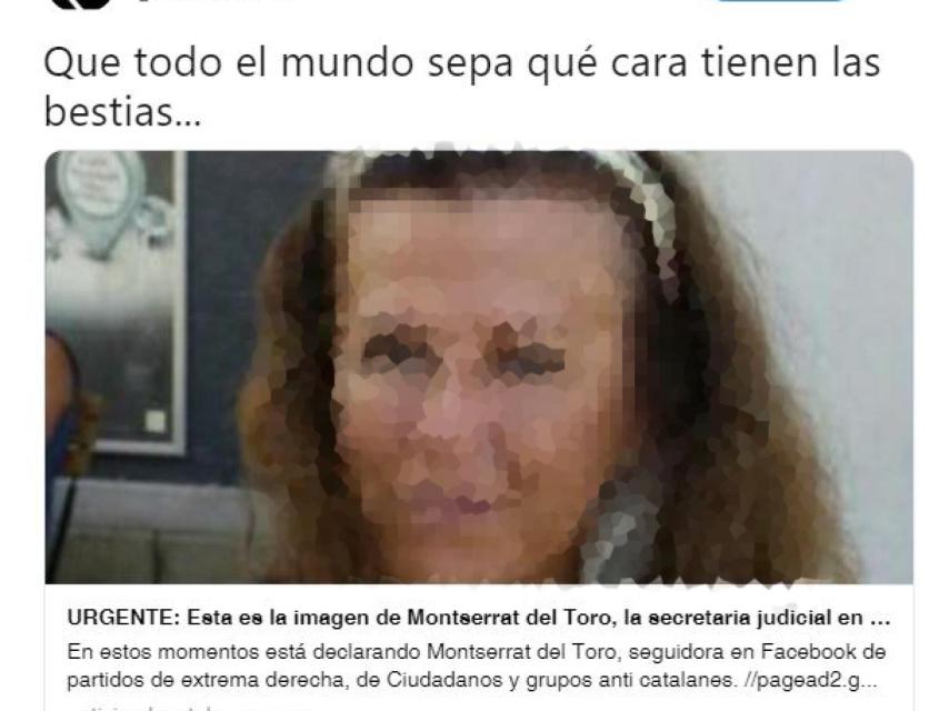 Por orden del Tribunal Supremo, la imagen de la letrada judicial no fue difundida. Es lo primero que han hecho desde las redes independentistas: propagar su fotografía. La acompañan de mensajes como "que la vida te sea un infierno", "esperamos de todo corazón que te rajen de arriba abajo, tocina nazi malfollada". En otros desean sodomización y que se acabe lanzándola a un arcén "cual vulgar mierda de perro que eres”.