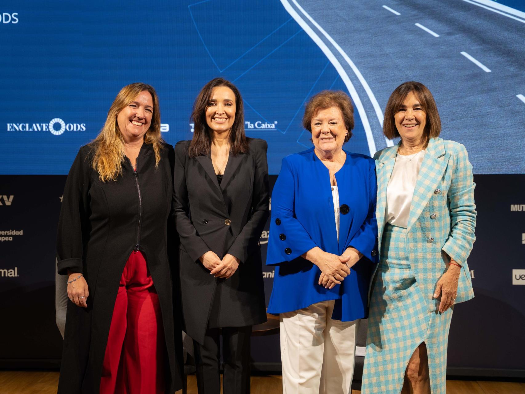 De izquierda a derecha; Gustavo Suárez-Pertierra, presidente de Unicef; Charo Izquierdo, directora de Enclave ODS; Nieves Segovia, presidenta del Grupo SEK; y Alberto García-Peñas, director del Máster de Ingeniería Circular de la Universidad Carlos III; en la tercera jornada del IV Observatorio ODS '2030, 5 años para la meta'.