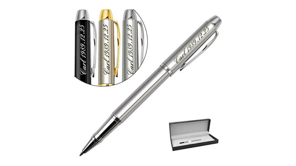 Al combinar un regalo personalizado y un producto útil, tendremos un regalo que fácilmente gustará a muchos. Este bolígrafo grabado te da la posibilidad de inscribir el mensaje que quieras, como una fecha o un nombre que recuerde a un momento especial. Puedes elegir entre color negro, plata o dorado, según los gustos de la persona a la que se lo quieras regalar. El bolígrafo admite recambios para poder usarlo todas las veces que se quiera, además, viene en una bonita caja perfecta para hacer un obsequio.