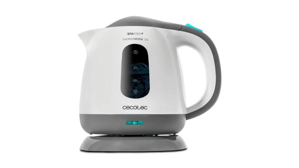Un hervidor algo más compacto pero lo suficientemente potente para esos hogares que no hacen tanto uso del agua caliente. Cuenta con capacidad suficiente para un litro de agua y con una potencia de 1100 W, con una zona de ebullición rápida. Cuenta con un asa ergonómica de tacto frío y protección contra el sobrecalentamiento. Con su base de 360º podrás calentar la jarra colocada en cualquier posición y no tendrás que preocuparte si esta se queda sin agua ya que el aparato se apagará automáticamente en ese caso. Incluye indicador del nivel del agua y filtro desmontable antical.