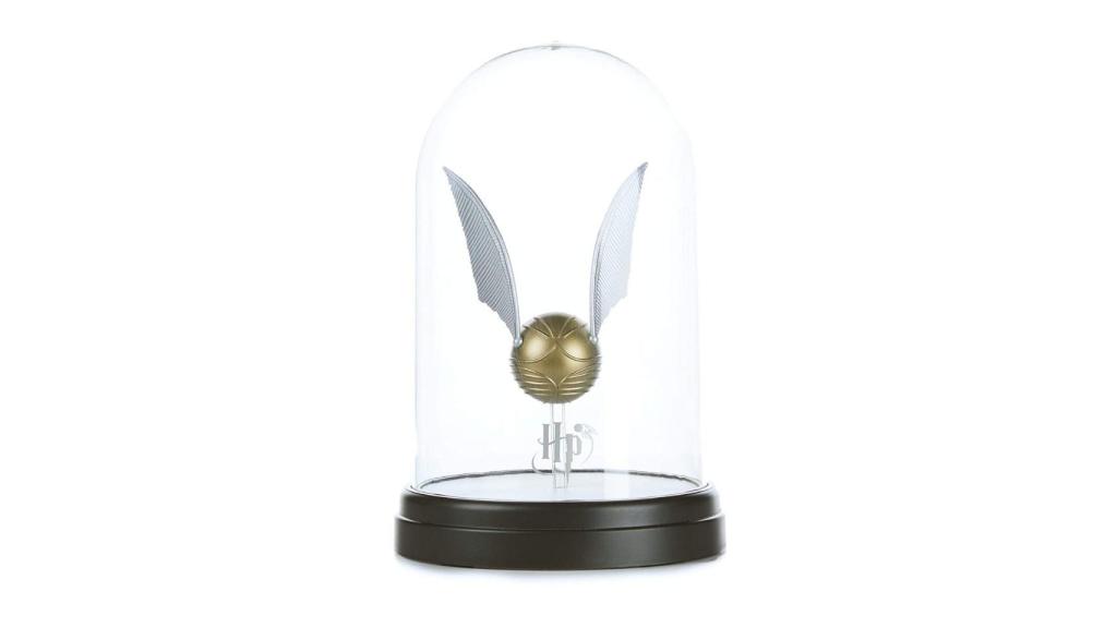 Los fans del mundo de Harry Potter tienen muchos símbolos y elementos especiales de los libro y películas. La Snitch Dorada es uno de ellos ya que está presente desde el principio hasta el final de la historia y que es importante para el protagonista. Ahora puedes tenerla en tu habitación en forma de lámpara de luz tenue, cubierta con una campana transparente que, al tocarla, hará que se encienda el interior. Funciona con conexión USB y tiene 21 cm de altura.