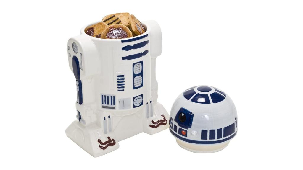 El universo de Star Wars es otro de los más grandes y con permanente presencia entre sus fans debido a las piezas audiovisuales que se generan y al gran apoyo que ha recogido a lo largo de los años. Aunque hay múltiples piezas de merchandising inspirada en el mundo Star Wars, hemos elegido esta figura de cerámica de R2-D2, uno de los personajes míticos, que sirve como galletero o como depósito en general para guardar cosas. La cabeza es la tapa de la estructura y cuenta con todos los detalles. También puedes encontrar la figura de BB-8, el casco de Darth Vader o el de un Stormtrooper.