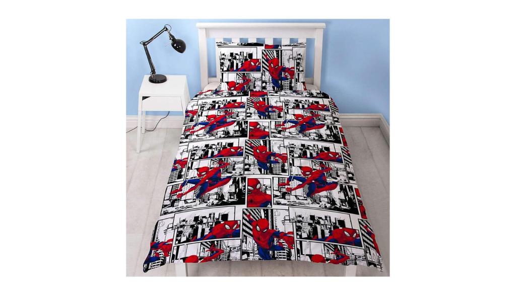 Para los fans de Marvel la cosa se complica al tener que escoger un solo personaje, dado la gran variedad de ellos y su popularidad generalizada. En este artículo te proponemos un juego de funda nórdica del superhéroe Spiderman con diseño de cómic e inspiración de metrópolis. Los colores son vivos y el material de la funda es lavable a máquina y apto par secadora. Incluye también funda de almohada a juego y ambas piezas son reversibles.