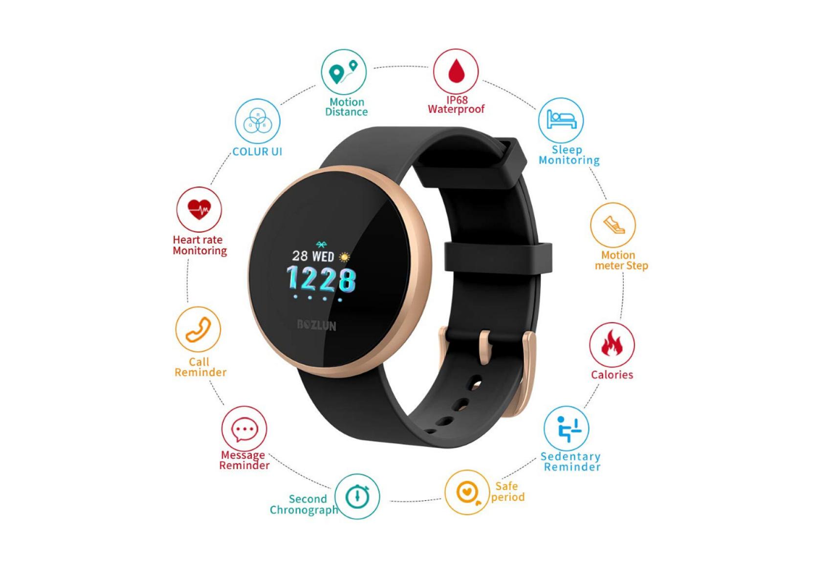 El reloj inteligente que te ofrecemos en concreto es de la marca BOZLUN y está diseñado en varios colores. Está catalogado como ideal para mujeres debido a su posibilidad de reducir la correa para las muñecas más finas y por la función que ofrece para controlar el periodo, pero puede llevarlo todo aquel a quien se le ajuste.