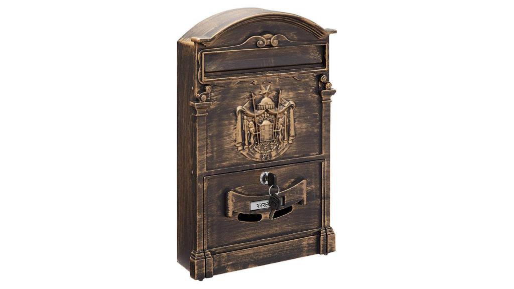 Si tu casa es de estilo rústico, clásico o señorial, este buzón será perfecto para colocarlo en la fachada, gracias a su diseño tradicional con toques en dorado o bronce. Está hecho de aluminio, que lo hace ligero a la vez que duradero y resistente, junto con la parte trasera que es de acero galvanizado.