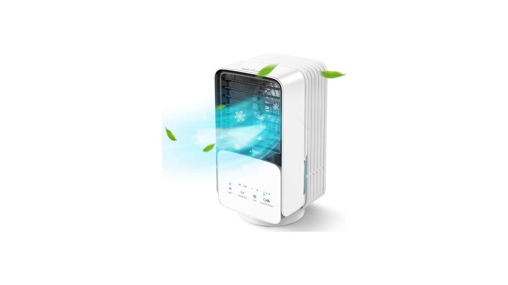 Con este aire acondicionado con 4 funciones en 1 también podrás disfrutar de un ambiente mucho más bonito y especial gracias a sus luces LED incorporadas. Ya no tienes que gastar una gran suma de dinero para no pasar calor este verano, dado que este dispositivo integra ventilador, humidificador, enfriador de aire y luz nocturna. Cuenta con tres niveles de viento y puede crear un ambiente mucho más fresco si añades agua fría. Aparte de todas estas ventajas, dispone de un temporizador y resulta muy silencioso.