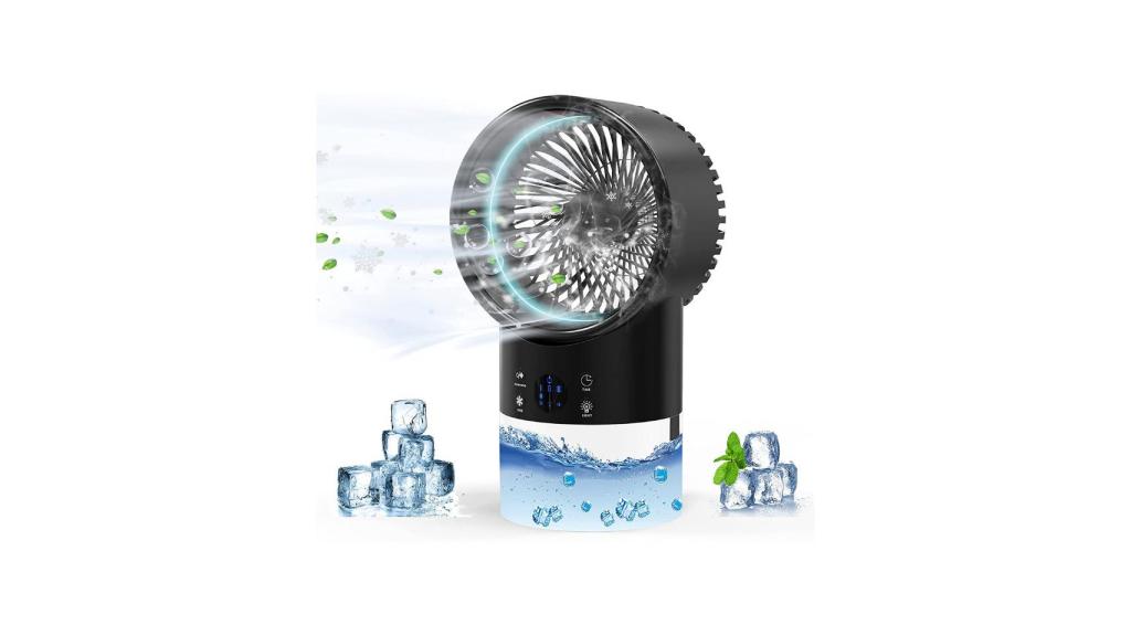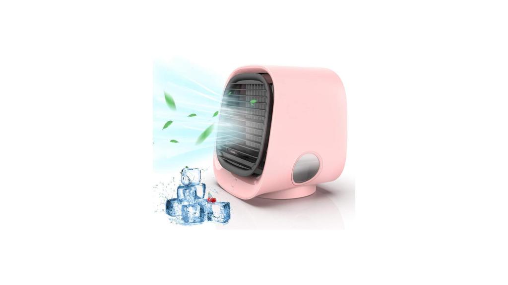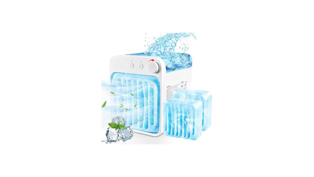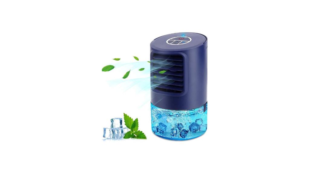 A diferencia del resto de los productos, este mini enfriador funciona con una bandeja de hielo doble para un mejor enfriamiento. Su capacidad es de 650 ml, por lo que es más duradero que el resto de los dispositivos. Además, podrás ir girando el interruptor de la derecha hasta conseguir la velocidad deseada. Se carga a través de un puerto USB, así podrás utilizarlo cuando quieras.