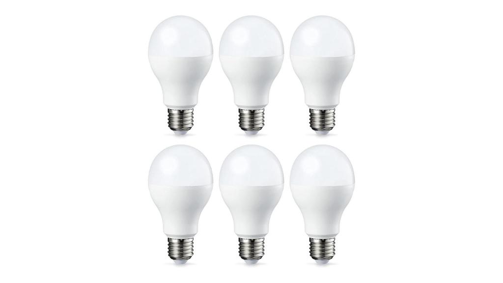 Si prefieres una iluminación blanca más fría, éstas son tus bombillas. Tienen una vida útil de hasta 25.000 horas con un uso normal diario y utilizan un 80% menos de energía que una bombilla incandescente. Vienen en un pack de cinco y tienen casquillo E27