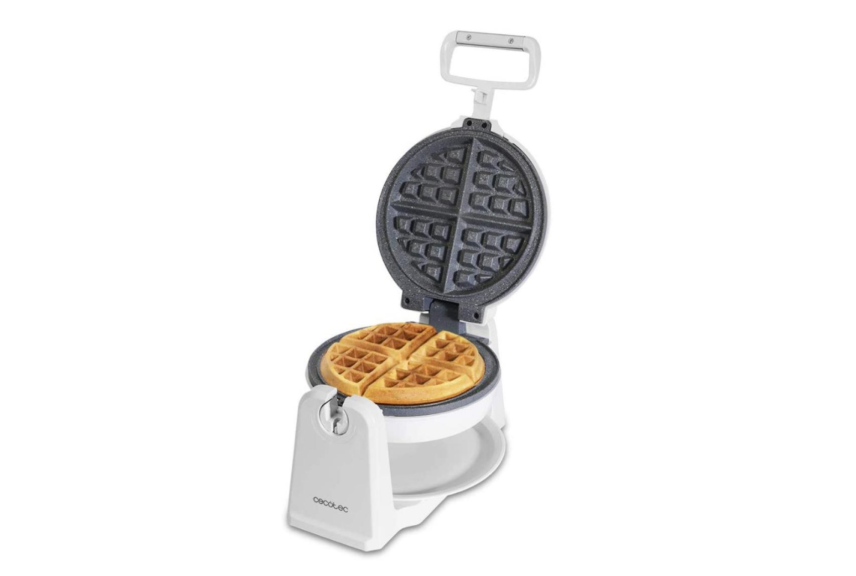 Como cuarta opción te recomendamos una gofrera algo diferente a los anteriores modelos, ya que está cuenta con un diseño que rota para darle la vuelta a los gofres y comprobar que están tostaditos tanto por arriba como por abajo. Es circular y cuenta con indicador de placas calientes para empezar a cocinar, protección contra el sobrecalentamiento, asa de tacto frío y base antideslizante para hacer todo mucho más cómodo.