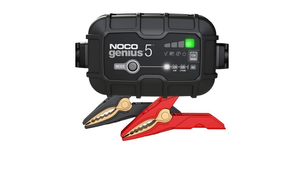 Si estás buscando un cargador de batería potente y pequeño al mismo tiempo, este de NOCO GENIUS5EU es ideal para ti. Detecta y repara automáticamente y proporciona un arranque más potente que además garantiza una mayor duración de la batería. Este artilugio está diseñado para baterías de plomo-ácido de 6 y 12 voltios de automóviles, marinas y de ciclo profundo. Destaca también su sensor térmico incorporado que detecta la temperatura ambiente y evita las sobrecargas.