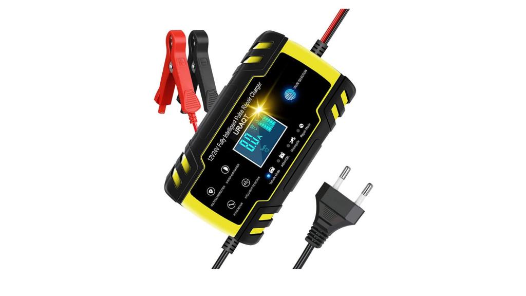 Con más de 3.000 valoraciones, el cargador de batería URAQT se sitúa como el mejor valorado de esta categoría. Es compatible con diferentes tipos de baterías, excepto las de litio. Puede cargar dos voltajes (12V o 24V) y cuenta con una carga inteligente, por lo que se apagará automáticamente cuando esté cargado. Entre otras de sus características también destacan los modos de invierno y verano y sus múltiples tipos de protección.