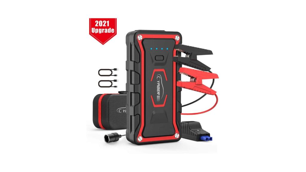 El cargador de batería más completo es de la marca Yaber y ofrece múltiples ventajas. Proporciona una corriente máxima capaz de arrancar un automóvil en tan solo unos segundos. Su banco de energía es de 23800 mAh y cuenta con puntas de acero inoxidable afiladas y endurecidas con las que además podrás romper las ventanas del coche en caso de emergencia. Gracias a su cable inteligente con sistema de protección 8 podrás sujetar las abrazaderas con total seguridad.