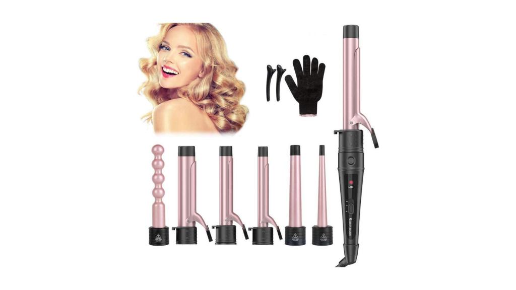 Como última opción, te recomendamos este rizador de pelo que, aunque no es de una marca tan reconocida, es otro de los favoritos de los usuarios. Se trata de un modelo diferente a los anteriores ya que es 6 en 1, ¿cómo? Gracias a los cilindros intercambiables que incluye, entre los que se encuentran diámetros y formas variadas para conseguir ondas y rizos de diferentes tamaños y efectos.