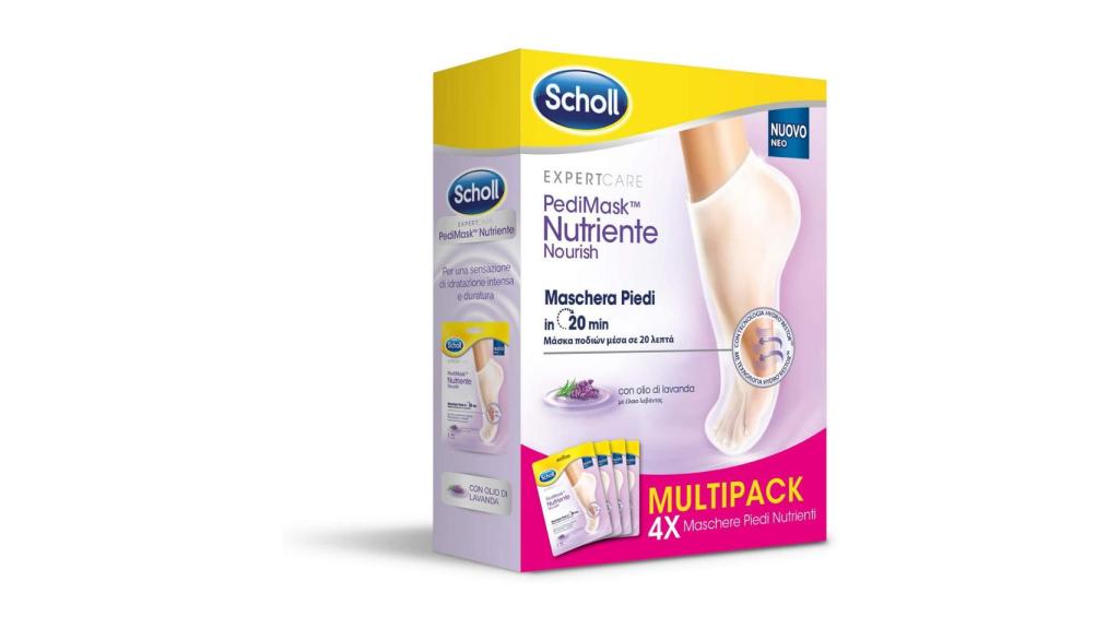 Con aceites de lavanda, manteca de karité y pantenol, esta mascarilla de pies en forma de calcetines proporciona la máxima hidratación de la piel de la zona. Tan solo tendrás que lavar tus pies, abrir las mascarillas, introducir los pies y mantenerlos dentro durante 20 minutos para que se absorban todos los componentes. Para acabar se recomienda masajear los pies para que se termine de introducir todo el producto en la piel. Este pack incluye cuatro mascarillas nutritivas.