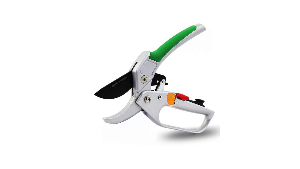 En esta selección no podían faltar las tijeras para podar más vendidas del momento. Cuentan con un mecanismo de trinquete para cortar incluso las ramas más sólidas y secas. Están fabricadas a partir de aluminio resistente a la corrosión y disponen de un soporte protector en un lado del mango para protegerte frente a posibles rasguños. Además, estas tijeras incluyen un afilador y una pequeña esponja para engrasar la cuchilla.