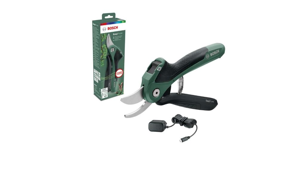 La mejor opción para podar sin cansarte es utilizando unas tijeras con motor eléctrico, como estas de la conocida marca Bosch. Gracias al motor eléctrico y su función de power-assisted podrás disfrutar de un corte sencillo incluso con ramas de hasta 25 mm de grosor. Cuenta con una batería resistente y duradera que ofrece hasta 450 cortes con tan solo una carga.