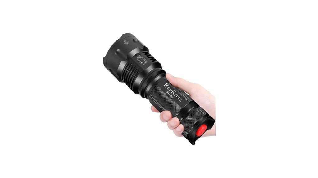 Esta linterna militar es muy práctica y potente. Su cuerpo de aluminio de alta resistencia a los golpes la hace adecuada para resistir a condiciones extremas tanto en zonas interiores como exteriores, por lo que la podrás usar durante tormentas, inundaciones, cortes de energía, etc. Destaca por su eficiencia energética y bajo consumo de batería, así podrás utilizarla durante más horas.