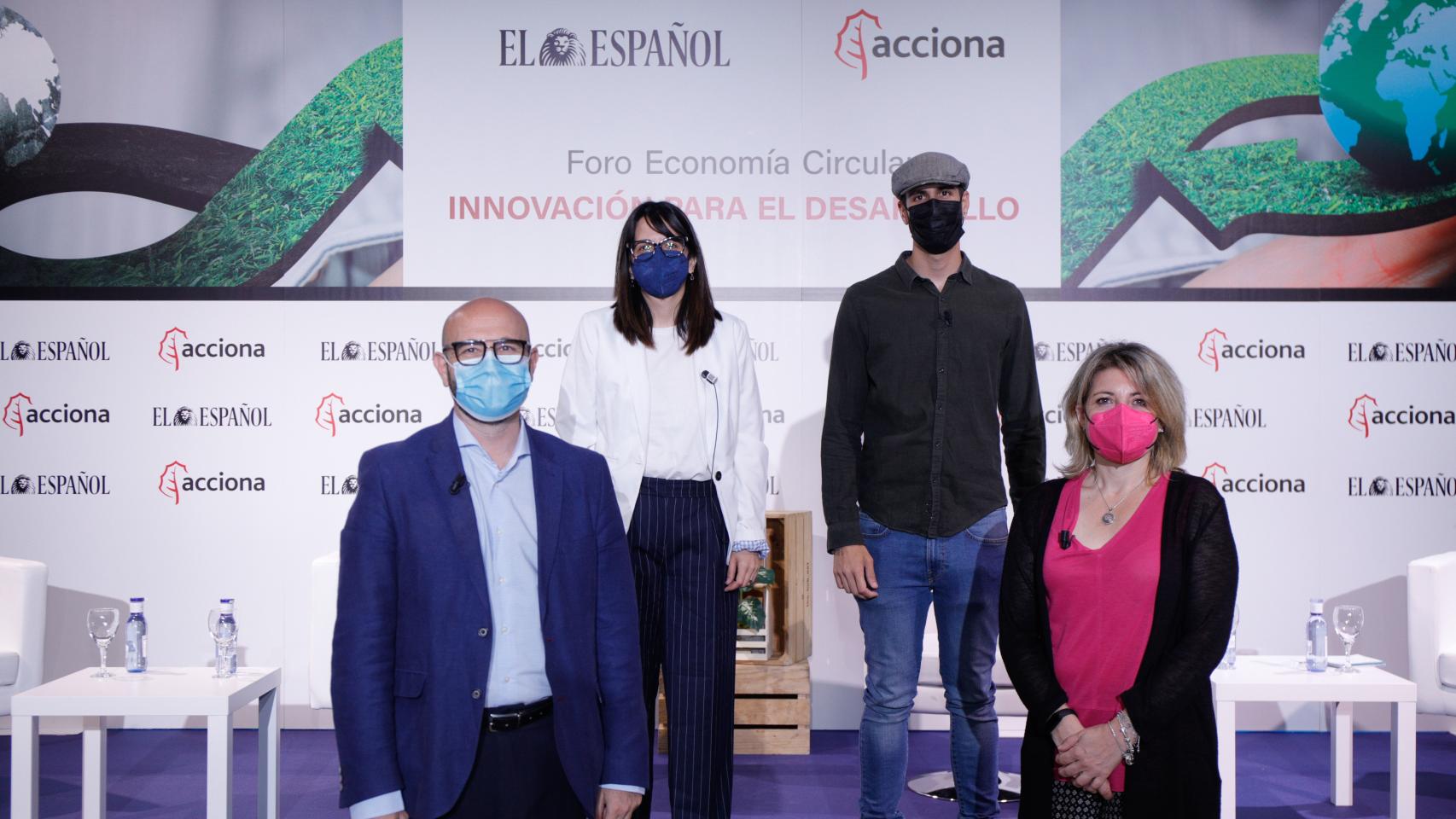 De izq a drch: José Magro, mánager de Sostenibilidad de AENOR; dith Guedella, responsable del grupo de Carreteras y Medio Ambiente dentro del Centro Tecnológico de Construcción de ACCIONA; Luis Morales, consultor de Economía Circular y Fundador del Centro de Innovación y Desarrollo para la Economía Circular (CIDEC) y Laura Ojea, redactora de Energía y Medio Ambiente en Invertia/El Español