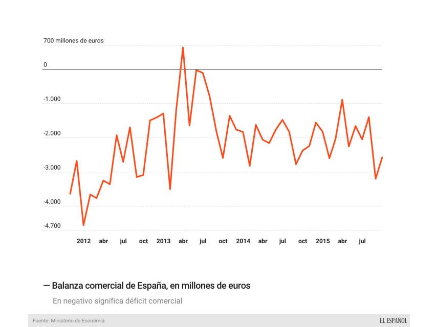 La recuperación de la economía española está liderada por un hecho clave: la recuperación de la demanda interna. Las empresas invierten y los hogares consumen, hasta aquí, todo bien. El problema es que una buena parte de sus compras se destinan a adquirir bienes producidos en el extranjero, lo que provoca un deterioro de la balanza exterior de mercancías del país, que vuelve a acelerar su déficit.