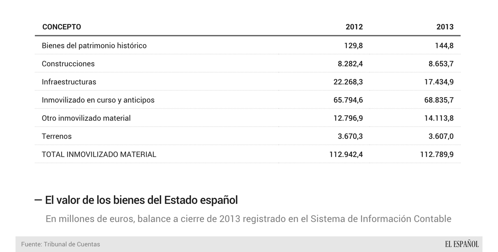 Los papeles dicen que la Administración Central española, a cierre de 2013 (último ejercicio fiscalizado), tenía bienes por valor de 112.790 millones de euros. Lo que ha constatado el Tribunal de Cuentas es que hay muy pocas posibilidades de que esa cifra sea real.