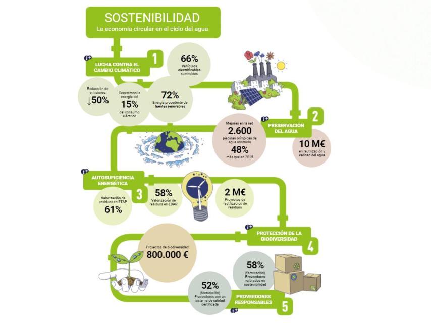 El documento presenta acciones simples, directas y con objetivos cuantificables que buscan combatir el cambio climático y llevar a cabo una labor formativa y de concienciación. La compañía, que ejerce su actividad principalmente en el sector del tratamiento de aguas y en el de recuperación y reciclaje de residuos, aprovecha toda su experiencia para caminar hacia un futuro más limpio y justo.