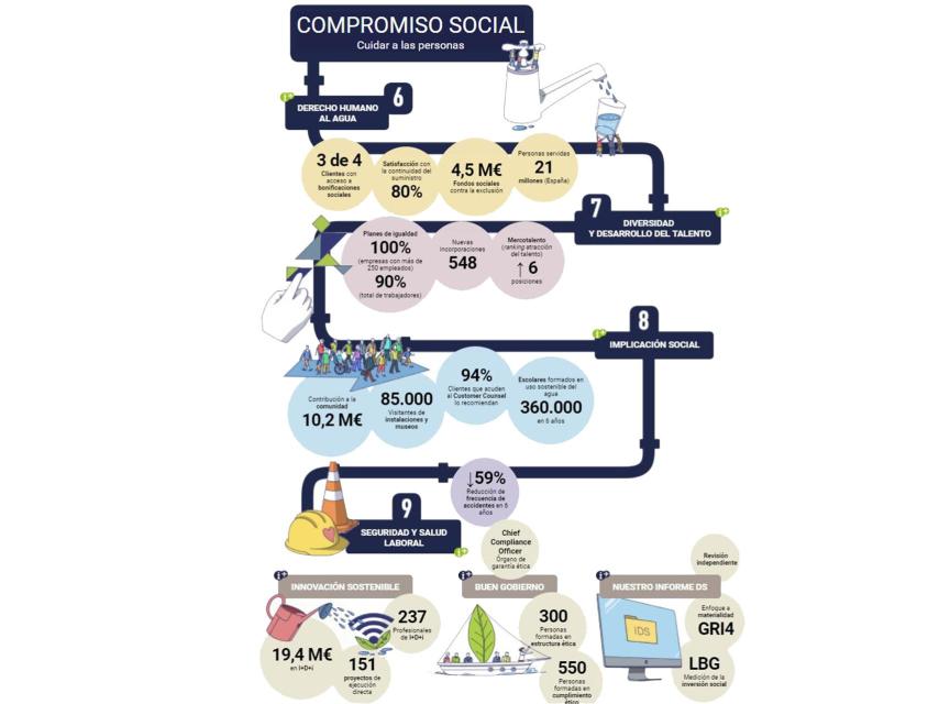 Sostenibilidad y compromiso humano. Apuesta por la preservación del medio ambiente y por las personas. Los objetivos de SUEZ España están claros y siguen el rumbo marcado por una brújula llamada ReWater Global Plan, el nuevo plan estratégico que traza las líneas maestras de la empresa hasta 2021 a través de nueve puntos que subrayan su responsabilidad en materia ambiental, social y laboral.