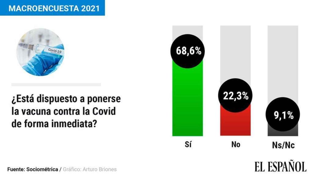De hecho, el último barómetro del CIS de diciembre indica que la tendencia de población a favor de la vacunación ha crecido en los últimos meses. Eso sí, según el citado estudio de SocioMétrica, la mayoría de los ciudadanos no estaría de acuerdo en que la vacunación fuera obligatoria.