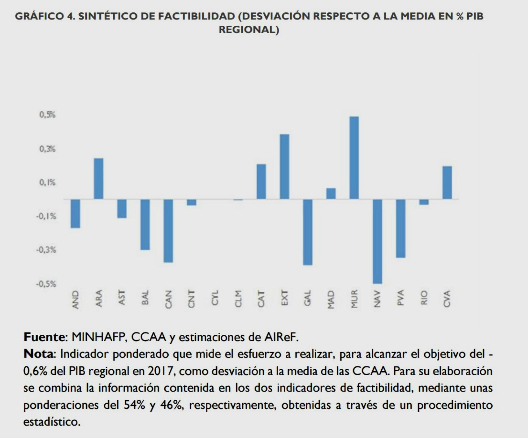Castilla y León y Castilla-La Mancha están en una situación similar. Hasta ahora han realizado un esfuerzo superior a la media y, para 2017 no se pueden relajar y tienen que mantenerse en el nivel de la media. El caso opuesto es el del País Vasco, que gracias a la financiación tan generosa que recibe, ni ha hecho esfuerzo estructural, ni tendrá que hacerlo para cumplir con los objetivos fijados.