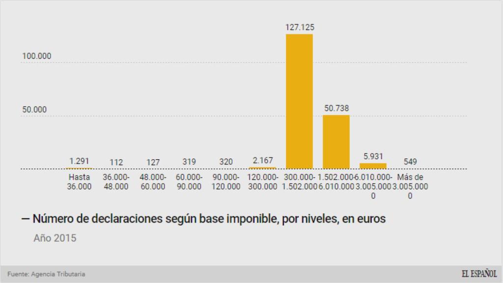 Así se desprende de la estadística del impuesto sobre patrimonio difundida por la Agencia Tributaria, que evidencia que este número es un 8% más que en 2014, cuando España contaba 508 multimillonarios.