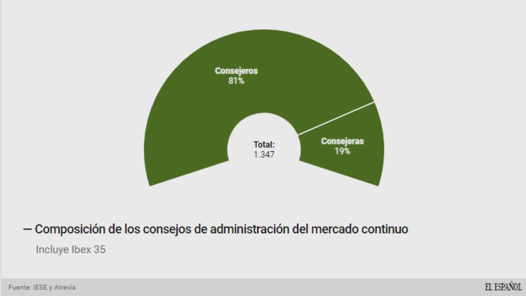 “Los datos revelan que hay que seguir insistiendo en los beneficios que supone incorporar mujeres en los consejos de administración. Incluir a las mujeres en los consejos aporta una visión más completa y real del mercado y redunda en beneficio de toda la organización", insiste la profesora del IESE Nuria Chinchilla. Hay 15 empresas del mercado continuo sin ninguna consejera -todas las del Ibex tienen al menos una- y otras 47 que cuentan con una única mujer en su Consejo.