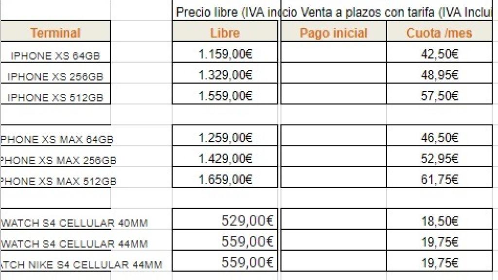 En el caso de Orange y a diferencia de Telefónica, ofrece además de los dos principales teléfonos, tres modelos del Apple Watch. La compañía francesa ofrece los precios del terminal a plazos contratando las tarifas Love Familia Total, Love Familia Sin Límites o Love Sin Límites. No se requerirá pago inicial y todas las cuotas se calculan en 24 pagos.