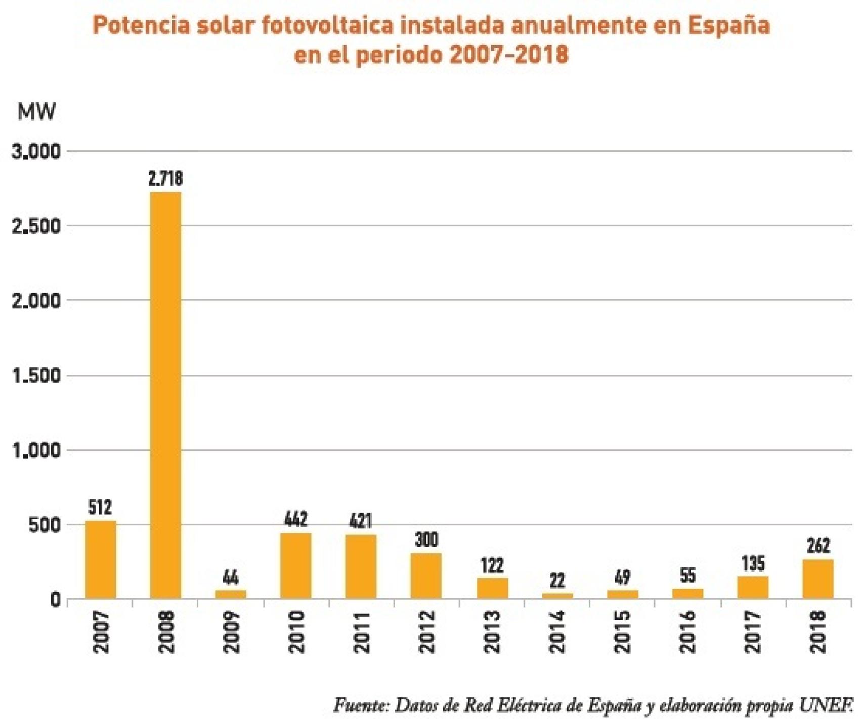 Se agarran a las previsiones del PNIEC presentado por el Ejecutivo de Sánchez, que pronostica que España habrá instalado 27 GW nuevos de potencia fotovoltaica hasta 2030. El sector fotovoltaico calcula que a finales de este año se habrán instalado entre 3 y 4 GW de proyectos de este tipo, ganadores de las subastas de 2017. Un ritmo que esperan mantener hasta 2030.