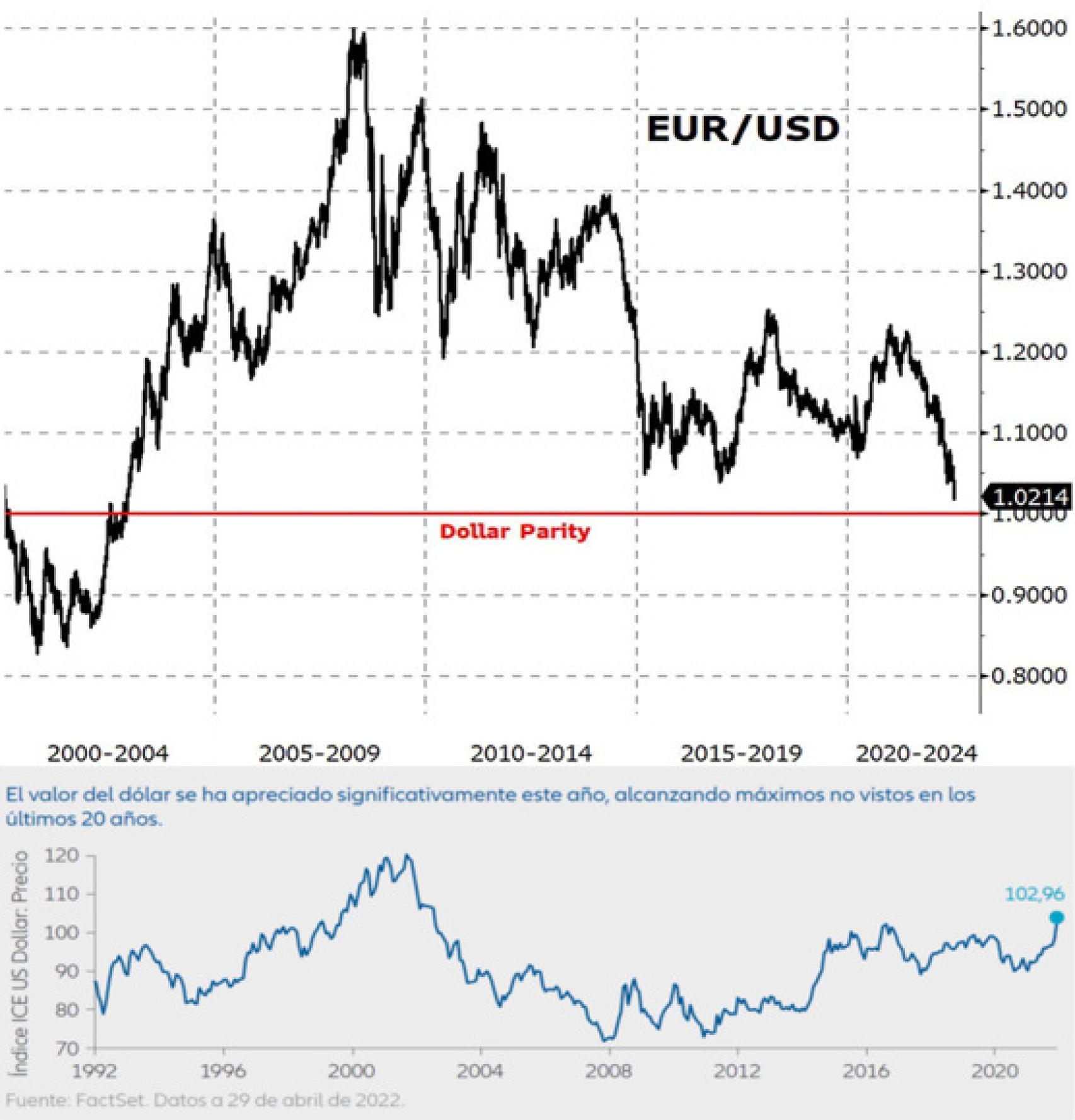Como bien dice Allianz, cuando el dólar está fuerte, el resto de los países lo tienen más difícil para frenar la inflación, ya que sus responsables políticos deben defender sus divisas o arriesgarse a una inflación de “importación”.