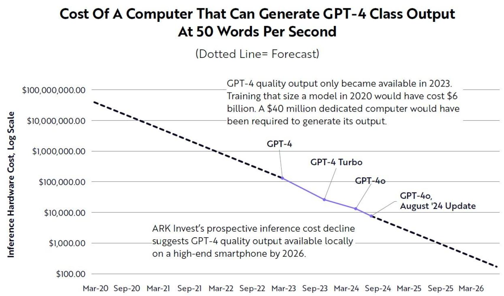 Según un reciente informe de ARK Invest, la firma de gestión de activos de Cathie Wood, la inteligencia artificial es absolutamente disruptiva porque ha tenido la curva de disminución de costes más pronunciada de cualquier tecnología en la historia. Todos los sectores de la economía global están aprovechando la IA.