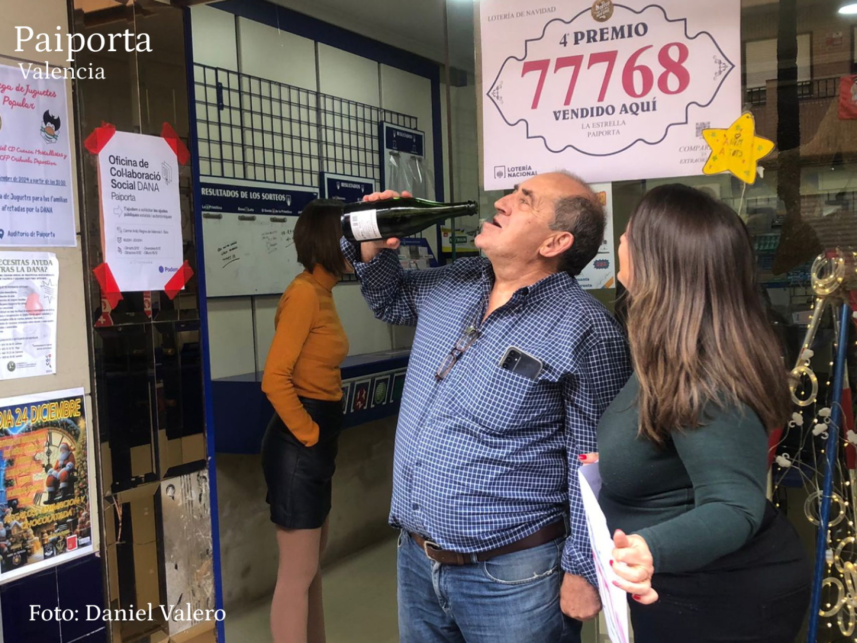 Además el despacho de lotería La Estrella de Paiporta ha aportado un poco de alegría en el vecindario al repartir parte de un quinto premio (el 37.876) del Sorteo Extraordinario de Navidad. Otro quinto premio, el 74.778, ha sido vendido en Paiporta (30.000 euros), y otro, el 72.853, en la administración número 43 de Valencia. Este último se ha vendido en dos bares situados en zonas por donde pasaban los voluntarios antes de desplazarse a pie a los municipios más afectados por la DANA.