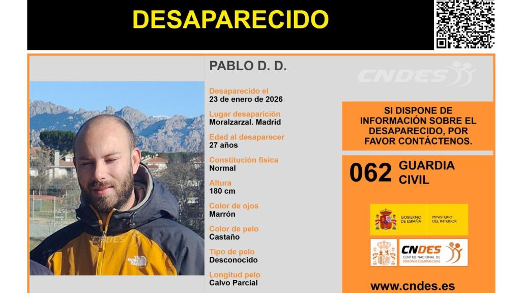Buscan a Pablo, el cacereño de 27 años desaparecido en la Sierra de Madrid: lo vieron hace 8 días en Moralzarzal