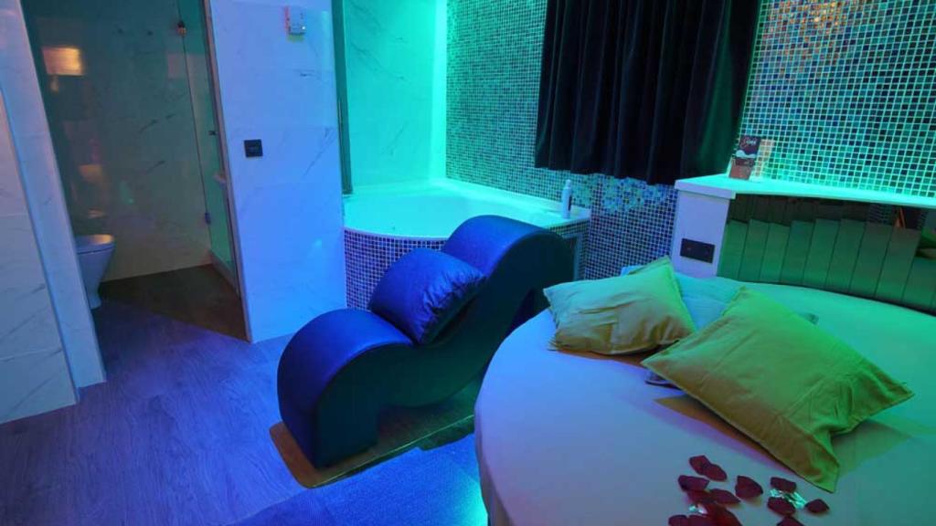 También cuenta con todo tipo de detalles como espejos, luces regulables, canal adulto y juguetes. Varias de sus habitaciones también tienen jacuzzi.