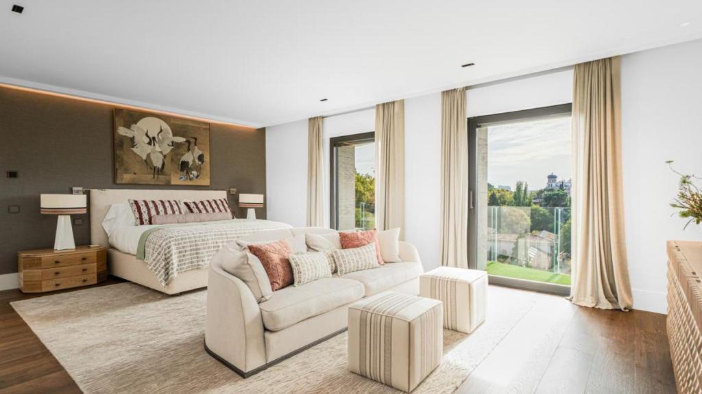 La vivienda cuenta con cinco habitaciones en suite, todas con su respectiva terraza. El dormitorio principal, de gran tamaño, dispone de una terraza con vistas al Jardín Botánico e incorpora un baño regado por la luz natural con ducha y bañera y dos vestidores de ensueño: uno con colores y materiales muy sofisticados para él y otro muy delicado pensado para ella.
