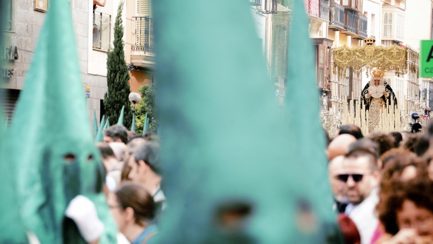 Si hay una estampa bonita el Domingo de Ramos, esa es la del mar de palmas que se crea frente a los titulares de la Pollinica, la cofradía de los niños, la más alegre de la jornada, y se podría decir que de toda la Semana Santa de Málaga.