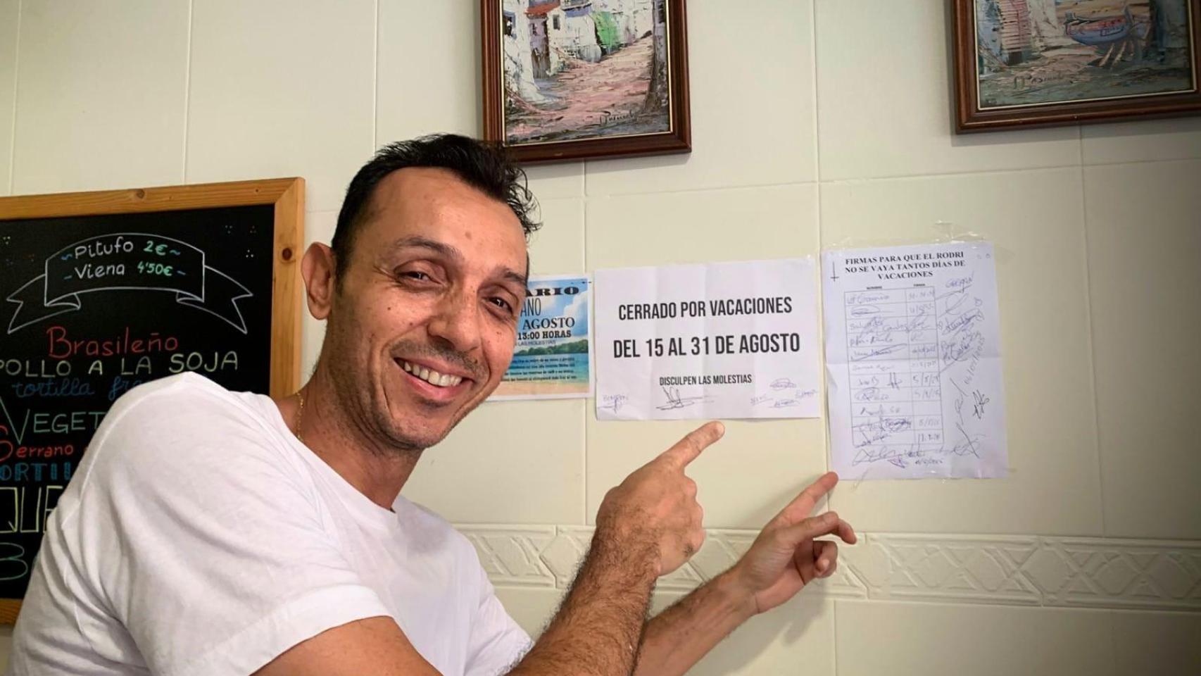 Lo que no imaginaba era que varios clientes, todos ellos trabajadores del Registro de la Propiedad, aparecerían al día siguiente de conocer la fecha elegida para sus vacaciones, con papel, celo y bolígrafo para recoger firmas. “En el papel, que pienso guardar de recuerdo, pone 'Firmas para que 'El Rodri' no se vaya tantos días de vacaciones'. Se han quedado sin hueco y ya hasta me han firmado el cartel de las vacaciones. No solo ellos, un montón de clientes”, relata entre risas.