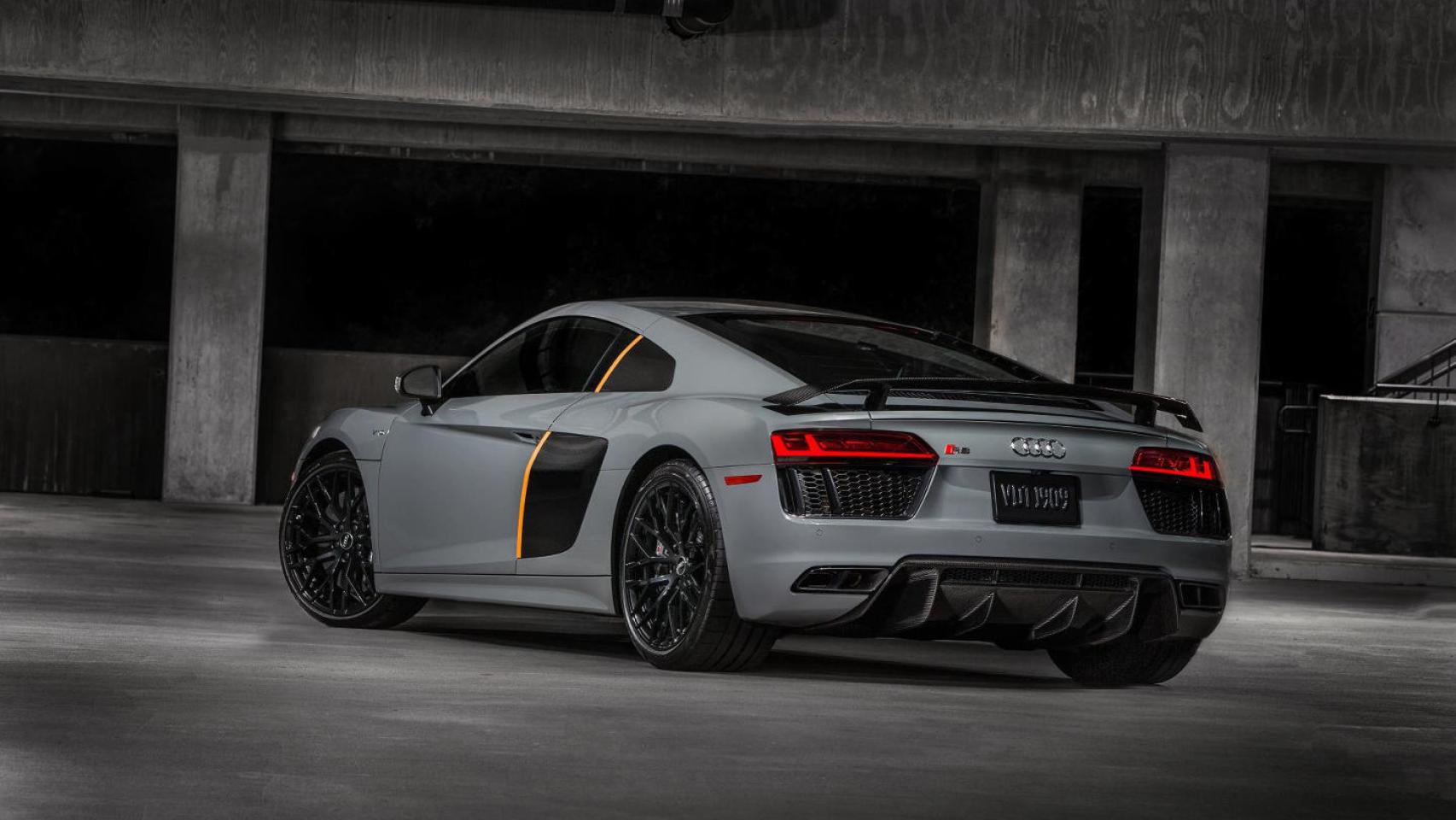 Cada una de las unidades de esta serie especial, además de incorporar de serie las luces láser, también tendrá otros elementos especiales, como la pintura de su carrocería de Audi Exclusive, denominada Quantum Gray, que irá combinada con los elementos en negro como la parrilla delantera, las llantas y los aletines laterales. El disfusor trasero, el splitter y los retrovisores son de fibra de carbono. El toque especial lo pone el detalle naranja de los sideblade.
